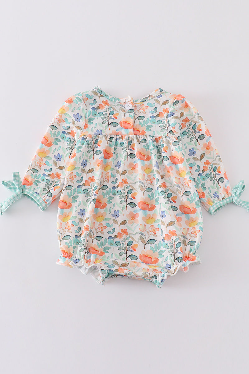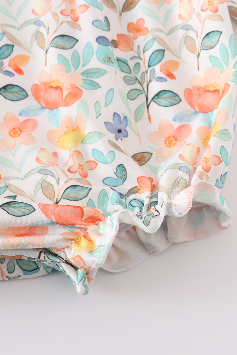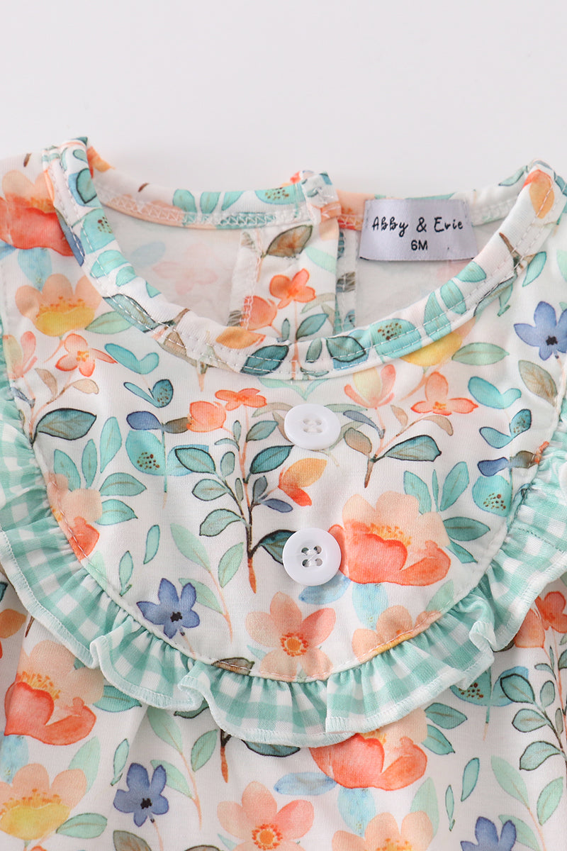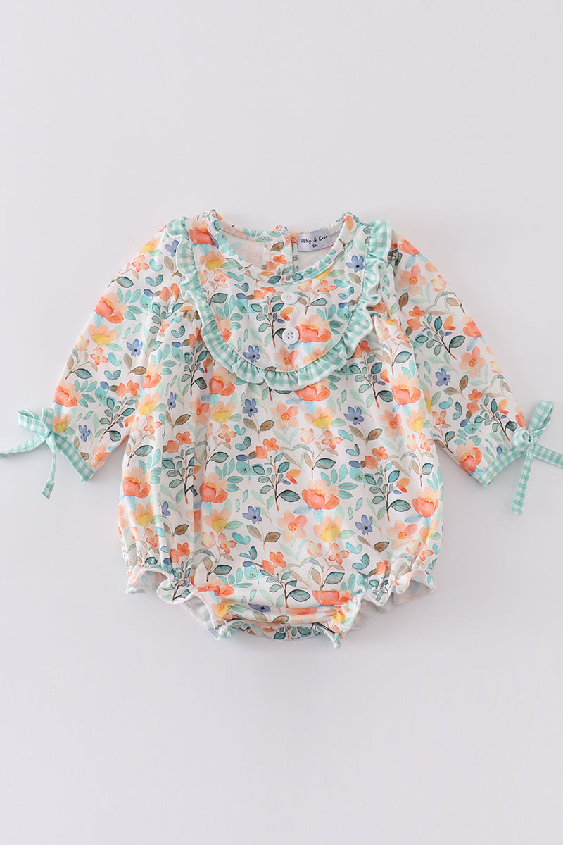 Celebrate the cozy charm of the season with our Autumn Bloom Bubble! Featuring a soft green watercolor floral print and sweet ruffle accents, this darling one-piece is perfect for crisp fall days and pumpkin patch adventures. The comfortable cotton-spandex blend keeps your little one snug while allowing for plenty of play. It’s a picture-perfect pick for all your autumn outings!