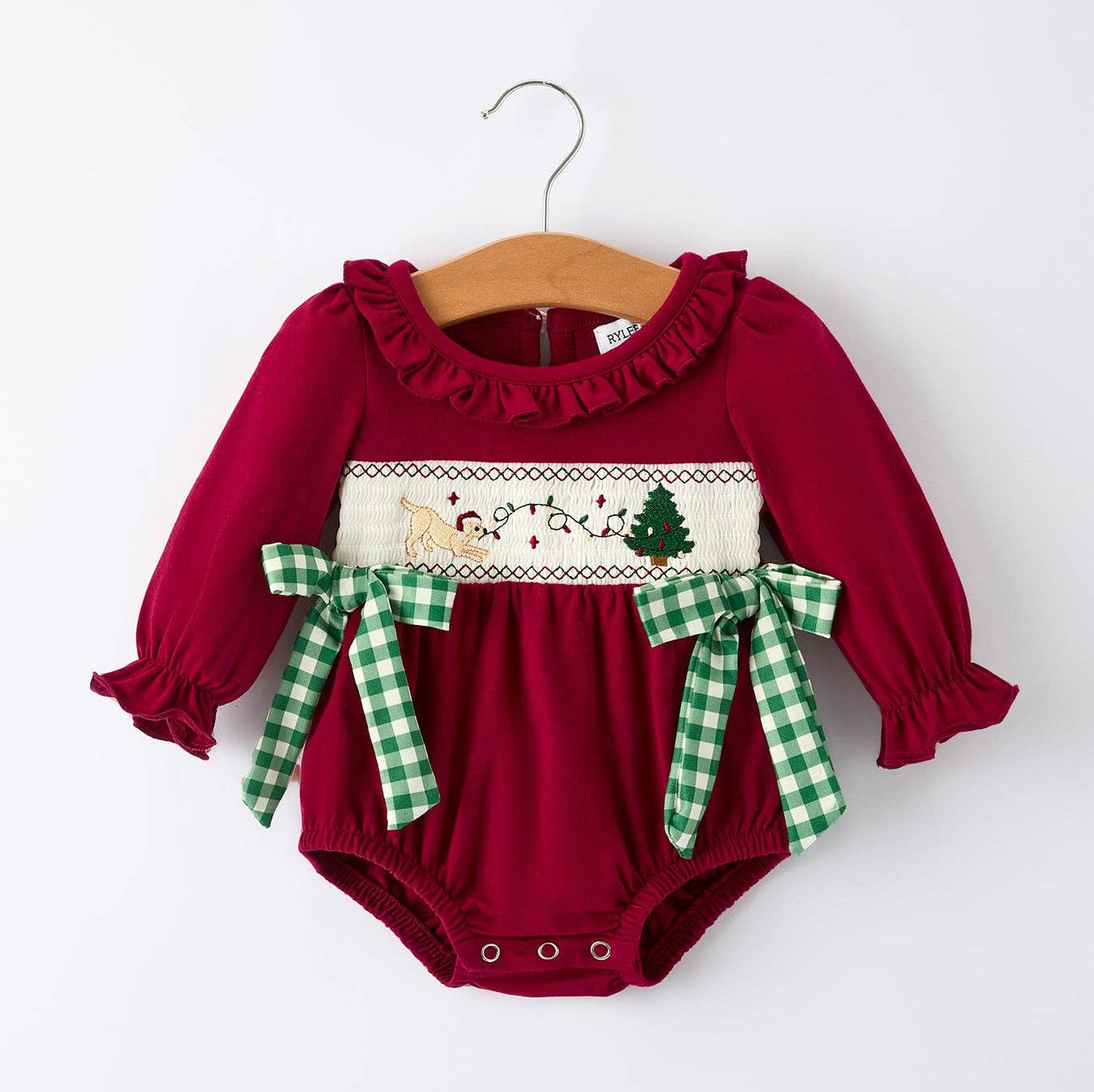 Featuring an adorable puppy pulling Christmas lights from the tree, this festive romper is full of holiday cheer. Made from soft, breathable fabric that’s gentle on baby’s skin, it keeps your little one comfy through every cuddle, photo, and playtime moment. Perfect for Christmas parties, cozy days at home, and capturing those sweet seasonal memories.