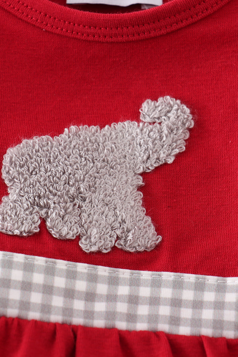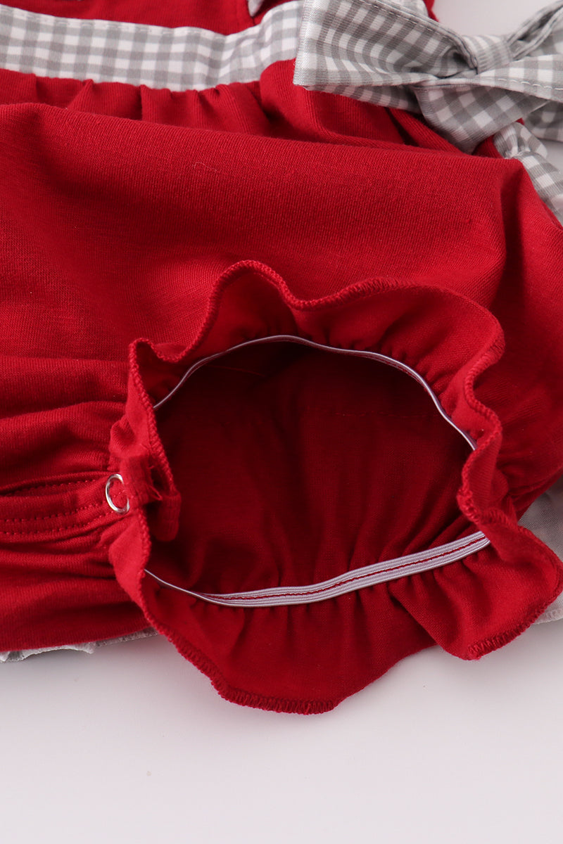 Roll in style with our Crimson Cutie Bubble! Featuring a charming elephant in delicate French knot embroidery and sweet ruffle details, this outfit is perfect for your tiniest fan. Whether it's game day, a family tailgate, or just showing off some Southern pride, this playful bubble brings spirited charm and all-day comfort.