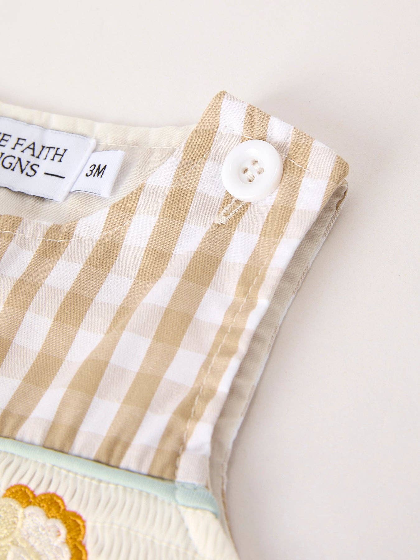 The Tiny Turkey Jonjon brings playful tradition to your boy’s fall wardrobe. With hand-smocked turkeys and a classic plaid design, this outfit is ideal for holiday dinners, family photos, and all of autumn’s special moments. Comfortable and easy to wear, it’s a staple piece for the season.