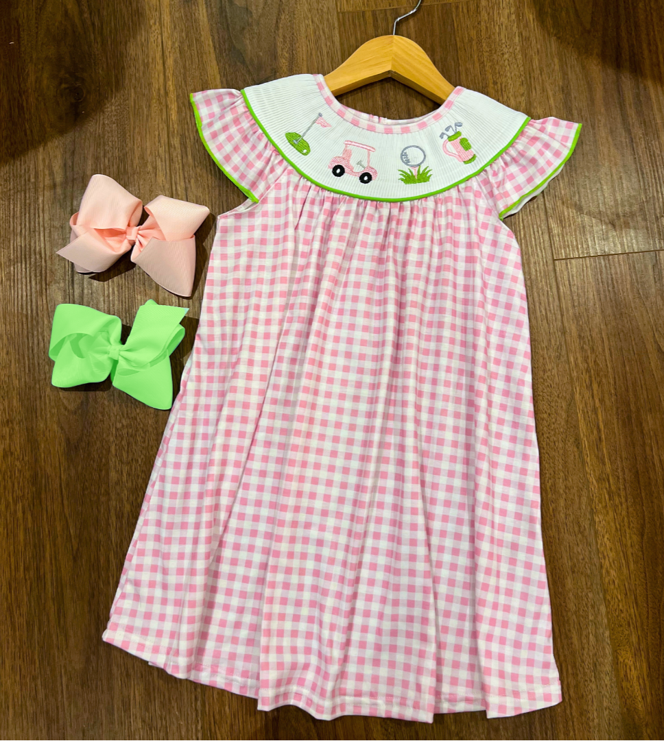 Tee up the cuteness with our Pink Par-Tee Dress! Featuring charming golf embroidery and a classic pink gingham print, this dress is perfect for your little one’s day on—or off—the green. Whether she's tagging along to the course or just playing pretend, this sweet and sporty style brings a whole lot of fun to her wardrobe. (Warning: may cause an unexpected love for tiny golf clubs.)⛳ 💖