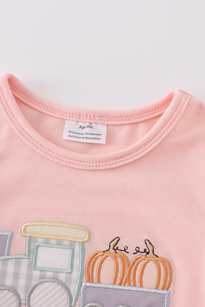 All aboard the sibling cuteness express! The Pumpkin Train Bubble is the perfect coordinating piece to our Pumpkin Train Tee, designed with a playful pink train appliqué hauling festive pumpkins through fall. Made from a soft and stretchy cotton blend, this bubble combines comfort with charm — ideal for trips to the pumpkin patch, family photos, or autumn adventures. Pair it with the matching tee for an adorable brother-sister set that’s full steam ahead on fall style!