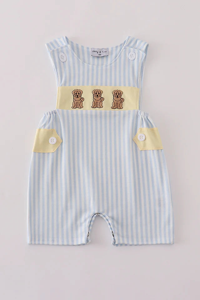 Dress your little one in tail-wagging cuteness with our Blue Stripe Puppy Embroidery Jonjon! Featuring classic blue stripes and an irresistible embroidered puppy, this jonjon is perfect for playdates, family photos, or special days out. Soft, breathable fabric keeps your little guy comfy while the sweet design adds a timeless touch.
