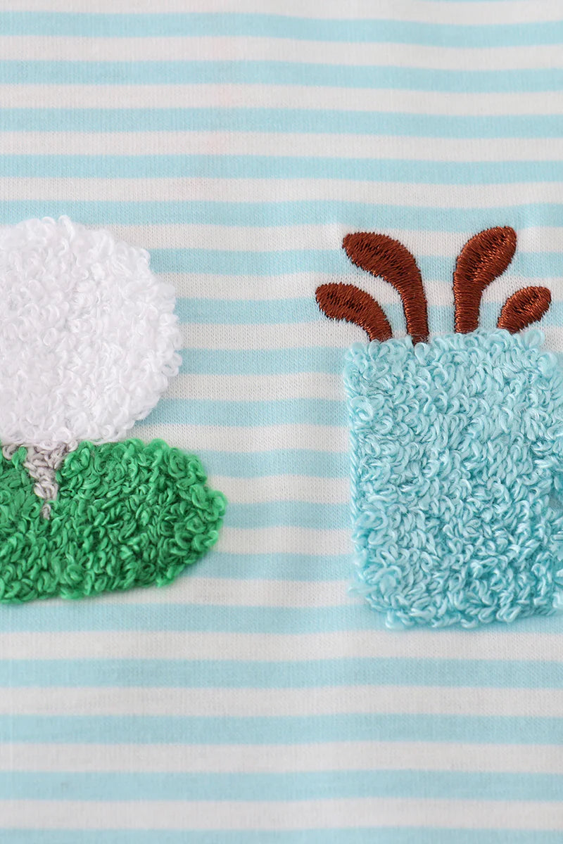 Your little guy will be ready to hit the green in our Tee Time Tee! ⛳💙 Featuring classic blue stripes and charming french knot golf embroidery, this sporty top brings playful polish to any summer day. Whether he’s watching the back nine or running around the backyard, this tee is a hole-in-one!